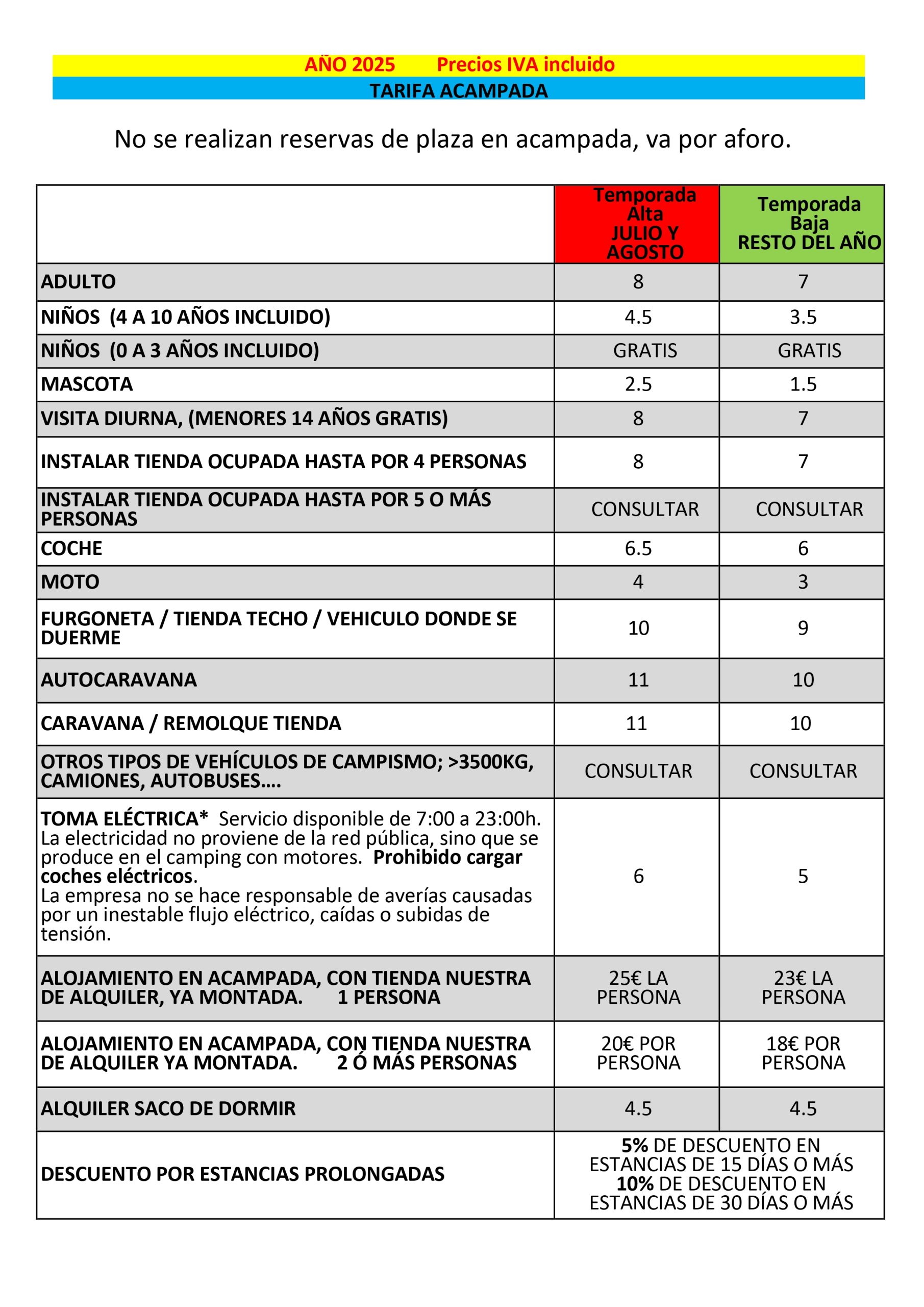 TEMPORADA BAJA……….. Resto de fechas en apertura